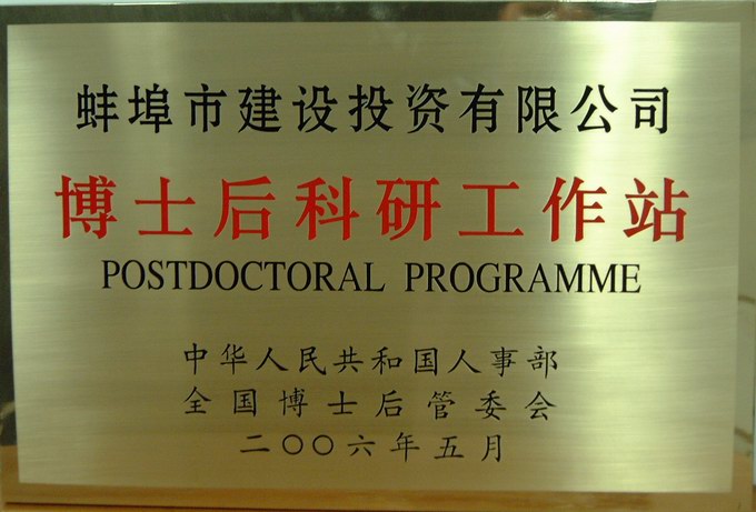 最近,國(guó)家人事部以國(guó)人部發(fā)[2006]53號(hào)文批準(zhǔn)蚌埠市建設(shè)投資有限公司等省內(nèi)8家單位設(shè)立博士后科研工作站。博士后科研工作站的設(shè)立,為公司科研開(kāi)發(fā)和經(jīng)營(yíng)管理引進(jìn)高層次人才開(kāi)辟了新的渠道?! ∧壳?,公司正按照有關(guān)文件要求,結(jié)合公司實(shí)際,制定切實(shí)可行的博士后工作管理細(xì)則,規(guī)范工作程序,逐步建立完善博士后工作管理制度,并抓緊與全國(guó)已設(shè)立博士后科研流動(dòng)站的高校、科研院所聯(lián)系,盡早確定聯(lián)合招收單位,研究確立高水平的博士后研究項(xiàng)目。博士后工作站建站事宜也正在緊張籌備之中。