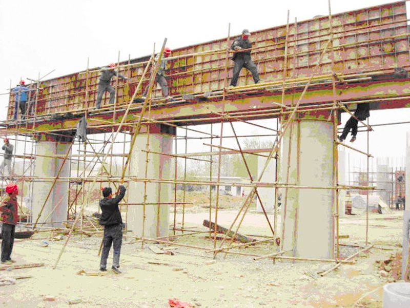 圖③ 國(guó)電配套工程之一——— G206線上跨橋建設(shè)速度加快。承擔(dān)G206線上跨橋施工建設(shè)任務(wù)的蚌埠市路橋公司積極響應(yīng),周密安排,在項(xiàng)目部掀起了“大干100天,確保五月底主體工程竣工”勞動(dòng)競(jìng)賽活動(dòng)。圖為4號(hào)橋墩蓋梁模板最后檢驗(yàn)時(shí)的場(chǎng)景。