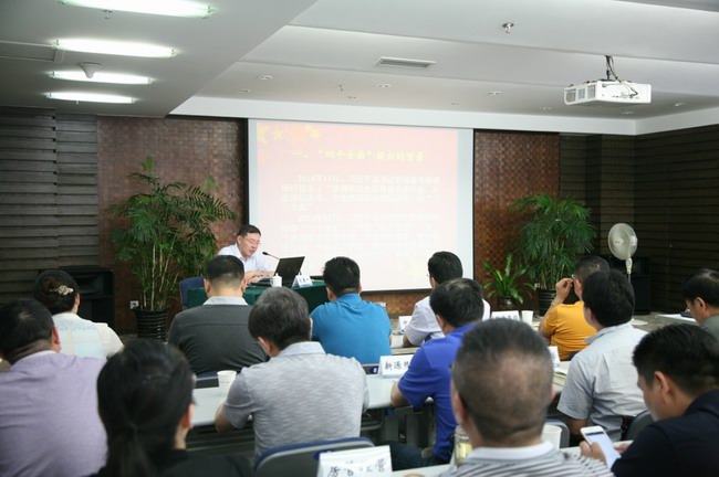 610下午,蚌投集團(tuán)黨委在投資大廈十三樓會議室舉行“三嚴(yán)三實”專題教育第一專題學(xué)習(xí)會,會議邀請市委講師團(tuán)團(tuán)長劉康一做《‘四個全面是治國理政的科學(xué)方略》專題報告。蚌投集團(tuán)黨委理論學(xué)習(xí)中心組成員、所屬全資控股子公司班子成員、所屬基層黨組織負(fù)責(zé)人、公司總部全體人員參加了學(xué)習(xí)會。