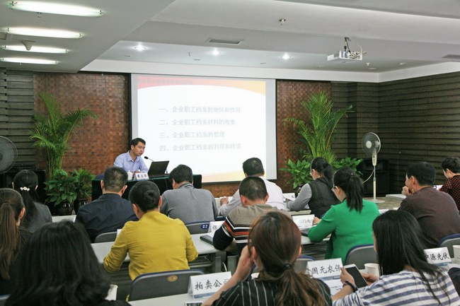 廖老師根據(jù)自身多年從事人事檔案工作的經驗與思考,結合客觀的理論和實際案例,闡述了企業(yè)職工檔案管理的意義、作用及特點,詳細介紹了職工檔案材料歸檔收集范圍的十九項內容,以及檔案分類、排序、編目、技術加工、裝訂和驗收入庫等具體操作步驟和要求。培訓結束,大家針對自己工作中遇到的具體問題進行了提問和討論。