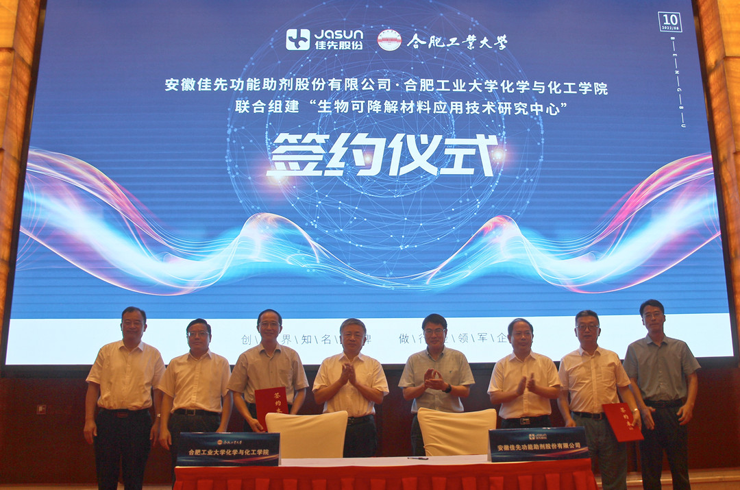 8月10日,安徽佳先功能助劑股份有限公司與合肥工業(yè)大學(xué)化學(xué)與化工學(xué)院聯(lián)合組建“生物可降解材料應(yīng)用技術(shù)研究中...