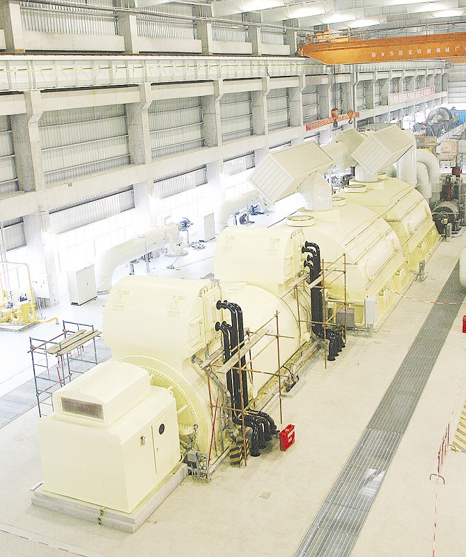 11月21日凌晨3時(shí)16分,國電蚌埠電廠2×600MW機(jī)組1號(hào)機(jī)組正式投產(chǎn)前的重要節(jié)點(diǎn)目標(biāo)——— 汽輪機(jī)沖轉(zhuǎn)一次成功,順利達(dá)到3000轉(zhuǎn)/分鐘,各項(xiàng)試驗(yàn)參數(shù)均達(dá)到設(shè)計(jì)規(guī)范要求,調(diào)試運(yùn)行穩(wěn)定。 技術(shù)人員介紹,汽輪機(jī)是發(fā)電機(jī)組的三大主機(jī)之一。通過鍋爐加熱產(chǎn)生的高溫高壓氣體進(jìn)入汽輪機(jī)后,帶動(dòng)汽輪機(jī)高速運(yùn)轉(zhuǎn),轉(zhuǎn)動(dòng)的汽輪機(jī)將帶動(dòng)與之聯(lián)動(dòng)的發(fā)電機(jī)轉(zhuǎn)軸,最終產(chǎn)生電能。 1號(hào)機(jī)組汽輪機(jī)沖轉(zhuǎn)一次成功,標(biāo)志著國電蚌埠電廠向1號(hào)機(jī)組年底前高標(biāo)準(zhǔn)達(dá)標(biāo)投產(chǎn)目標(biāo)又邁出了堅(jiān)實(shí)一步。目前,電廠正在抓緊設(shè)備消缺和各項(xiàng)試驗(yàn)工作,為下一步實(shí)施整套啟動(dòng),進(jìn)而開展“168小時(shí)試運(yùn)”做好充分準(zhǔn)備。